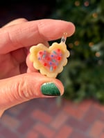 Classic sugar cookie heart frosted with pink icing and sprinkles !