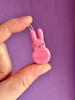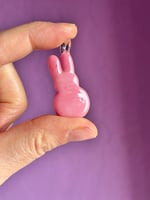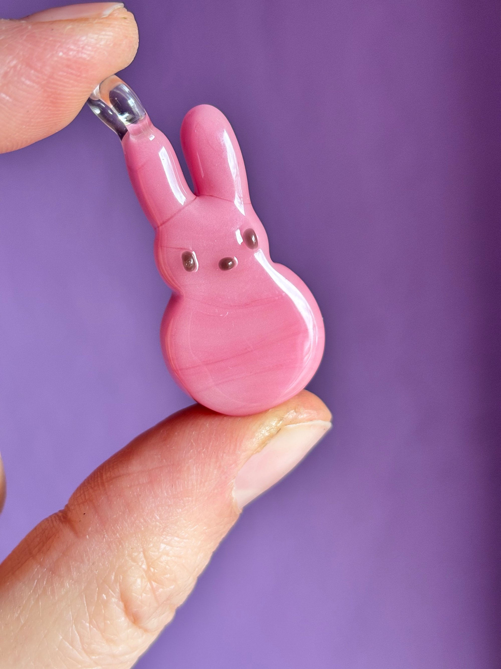 Classic pink marshmallow bunny sculpted in glass .