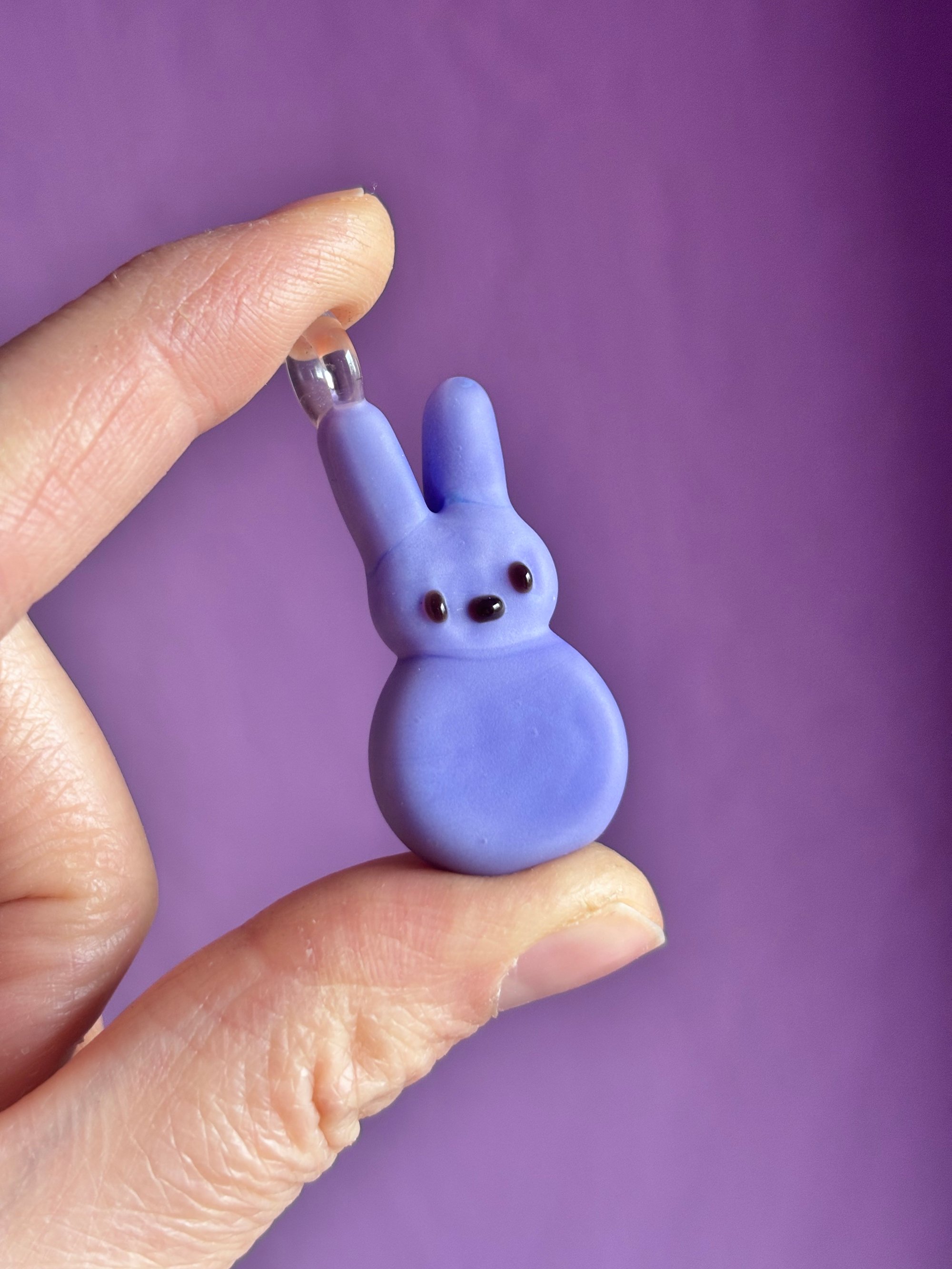 Sandblasted sculpted glass purple marshmallow bunny .